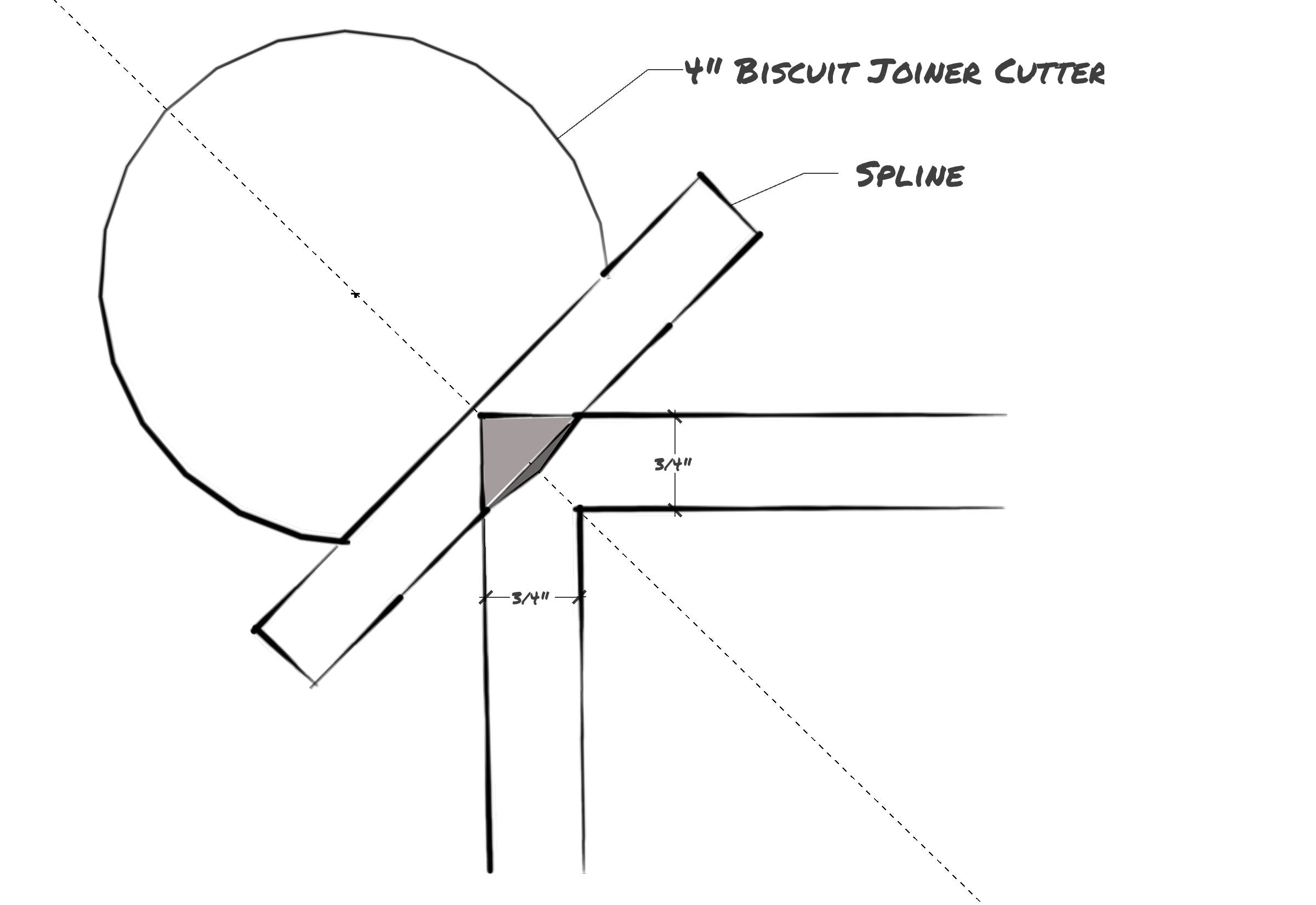 Why cutting splines for miters with a biscuit joiner is a great idea, explained with geometry.
