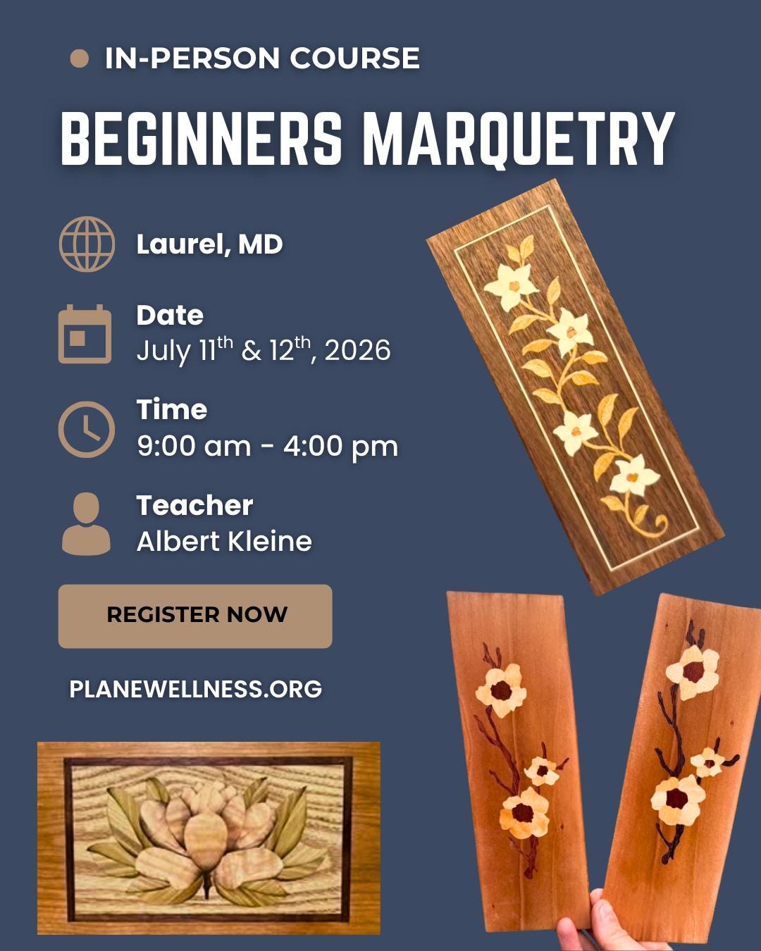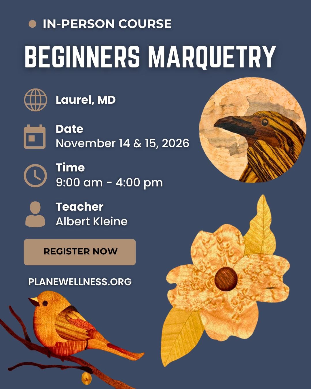 All classes are in person at my shop in the DC/Baltimore area. See planewellness.org for registration.